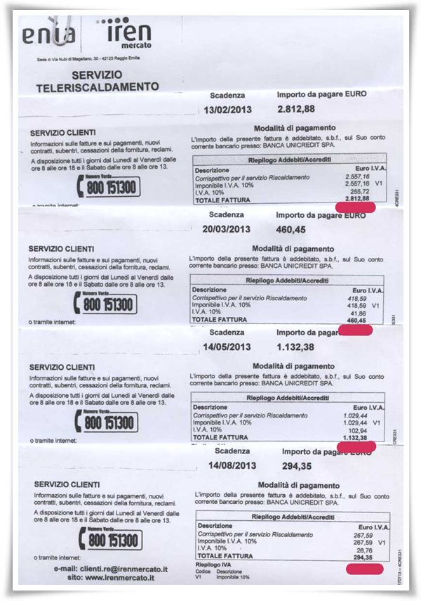 L'esempio è ai limiti perchè si riferisce al servizio di Teleriscaldamento a Reggio Emilia che risulta particolarmente costoso. In questo caso la riqualificazione energetica dell'impianto di riscaldamento e acqua sanitaria della villetta ha portato ad un risparmio in bolletta del 70% rispetto all'anno precedente.